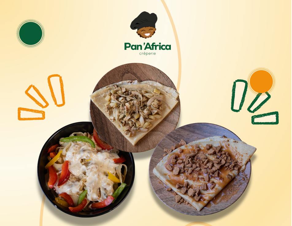 Passe nous voir à Pan’Africa Dakar ou commande en quelques clics. Sur place, à emporter ou en livraison, on te sert des crêpes gourmandes et des boissons fraîches, avec un service rapide.